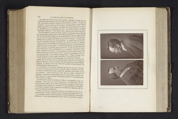 Editor: We’re looking at a photographic print, a gelatin-silver print titled *Portret van een onbekende vrouw*, or *Portrait of an Unknown Woman*, created before 1903 by Alfred Kirstein. It’s reproduced in a book spread. It strikes me as being remarkably intimate, almost like a secret snapshot, wouldn't you say? What do you see in this piece? Curator: A ghost from the past, whispering forgotten stories! The unknown woman, framed within a book, becomes doubly mysterious. Is she a phantom, trapped in ink and silver? Or are we, the viewers, intruding on a private moment, accidentally glimpsing a life that was? And is there some subtle Intimist reference, tucked away in a book? The use of the gelatin-silver print is amazing to convey emotion, wouldn’t you agree? Editor: I do. I hadn't quite picked up on the 'ghost' idea initially, but that reading certainly resonates. The image quality isn't what we'd expect today - perhaps that has something to do with it? Curator: Precisely! The imperfections, the delicate fading... It's a gentle reminder of photography’s fragility and also our own. Do you find it melancholic? Or something else altogether? Editor: There is definitely an emotionality, especially that ghostly touch. I would have easily walked by without even seeing her! Curator: Isn’t that always the risk, when looking at art? Missing what is right in front of us. Still, it’s there for us, waiting.