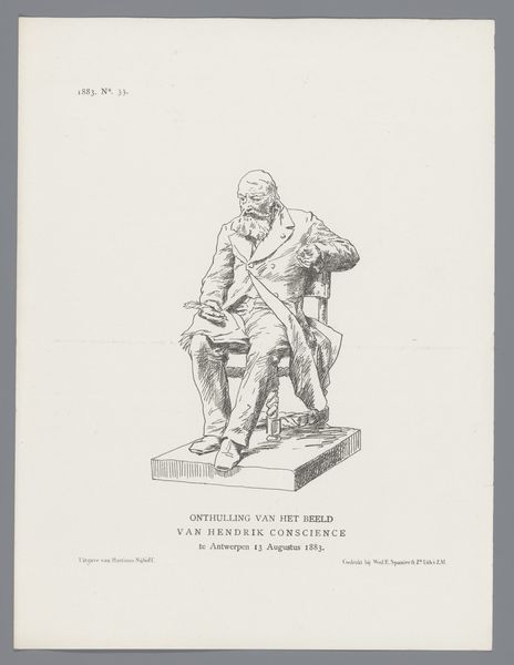This satirical print by Johan Michaël Schmidt Crans, likely from 1878, engages with the fraught social dynamics of its time in the Netherlands. The cartoon, titled "A Christian Against the Jews," depicts a statue of Moses towering over a contemporary figure. The image creates meaning through its direct engagement with religious and social identities. Moses, a foundational figure in Judaism, is presented as an imposing, almost judgmental figure. The small man in the foreground can be read as a representation of contemporary anti-semitism within Dutch society. The Netherlands in the late 19th century was undergoing significant social and political change, grappling with questions of religious tolerance and the integration of diverse communities. Cartoons like this offer historians a valuable window into the anxieties and prejudices circulating in the public sphere. Further research into the publications where this cartoon appeared, alongside period documents about Jewish life in the Netherlands, would deepen our understanding of its social context. The meaning of art is contingent on social and institutional context.