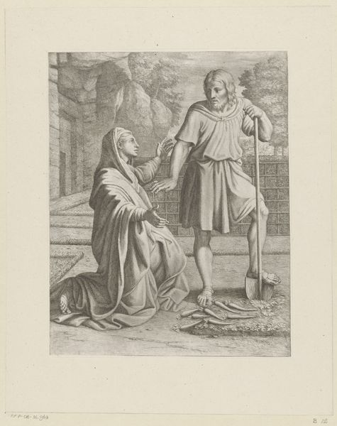 Frederick Bloemaert created this print, "Heilige Copres," using the intaglio process, where an image is incised into a metal plate, which then transfers ink onto paper. The magic of intaglio lies in the artist's ability to control line and tone through the depth and density of the etched or engraved marks. Look closely, and you'll notice how Bloemaert varies the hatching to create shadows and volume, giving form to the figures and their garments. The act of printmaking democratized image production during the early modern period. Bloemaert's skilled labor transformed base materials—metal, ink, and paper—into a medium capable of disseminating visual stories to a wide audience. What had previously been the domain of painting, accessible only to the wealthy, was now available to the middle classes. This invites us to consider how modes of production deeply affect the reception and understanding of an artwork. We can appreciate the artist's technical skills while acknowledging the work's broader implications of labor, class, and cultural distribution.