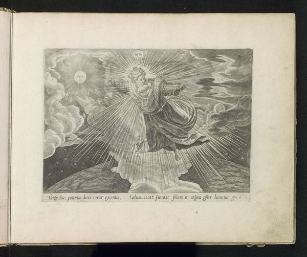 Curator: Here we have John Flaxman's "St Peter," part of the Tate Collection. The artwork presents a vision of the saint surrounded by figures within a radiating, comet-like form. Editor: It's striking how minimal the line work is, yet it conveys such drama. You can almost feel the intensity of the moment through the stark contrast and dynamic lines. Curator: Flaxman, born in 1755, was deeply engaged with Neoclassical ideals and religious themes. His work often aimed to purify art of what he saw as baroque excesses, returning to a more austere aesthetic. Editor: Austere is right. The lithographic process and its capacity for reproducibility also suggest a democratization of religious imagery, moving it beyond the confines of the church or wealthy patrons. Curator: Precisely, and the social context of the late 18th and early 19th centuries, with its burgeoning print culture, made Flaxman's work widely accessible, shaping public perceptions of religious figures. Editor: Knowing the print's scale, roughly 136 by 190 mm, makes me think about the haptic quality of it. It's meant to be held, closely studied. Curator: It invites contemplation, reflecting the period's emphasis on reason and moral instruction. Editor: A pocket-sized emblem of faith, produced and consumed in a rapidly changing world. Curator: Indeed, Flaxman's work offers a glimpse into the visual and cultural landscape of his time. Editor: A powerful little print that speaks volumes about art, faith, and industry.