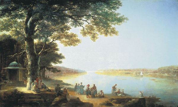 Editor: We’re looking at Claude Lorrain's "Landscape with Water Mill," painted in 1648. It’s an idyllic scene, but it also feels very constructed, almost like a stage set. What social commentary do you see in a seemingly peaceful landscape? Curator: The “constructed” feeling you pick up on is key. Lorrain, though celebrated for landscape, wasn’t just depicting nature. He was crafting an ideal – one rooted in classical ideas of order and harmony, very much influenced by his Roman context. This ideal wasn't accessible to everyone. The presence of genre figures allows us to witness idealized rural life while the water mill gives indication of industry at that time, hinting at economic foundations propping up such an idyllic vision. How does its current location at the Galleria Doria Pamphilj influence its interpretation today? Editor: Knowing it hangs in the Galleria Doria Pamphilj changes things. It speaks to how powerful families used art to showcase their refined taste and connection to these classical ideals, really reinforcing social hierarchies through the control of imagery. Curator: Precisely. These paintings functioned as status symbols, demonstrating cultural capital. Moreover, placing figures from mythology in pastoral scenes often obscured contemporary struggles of that era, while simultaneously establishing an indirect association of wealth with classical legends. It serves a purpose far beyond pleasing aesthetics, and it subtly endorses a particular worldview. What’s been illuminated for you regarding Baroque landscapes? Editor: I had always understood landscapes from this period as simply appreciating nature, but the social context really highlights how these images served a very political role. I see now they were far more intentional and complicated than I initially thought. Curator: Yes, their sophisticated appeal served as a crucial visual tool that propagated power during the Baroque era. It reminds us to think critically about whose perspectives are centered, and what ideological work landscape painting accomplishes in its representation.
