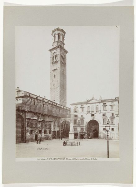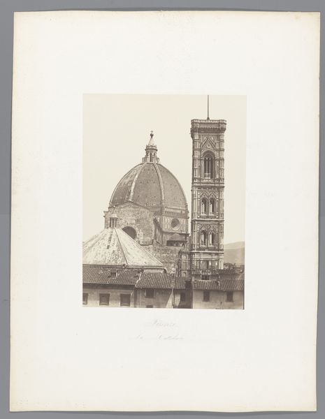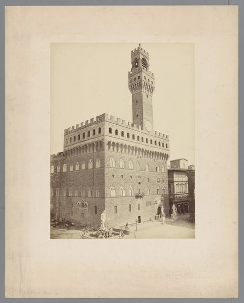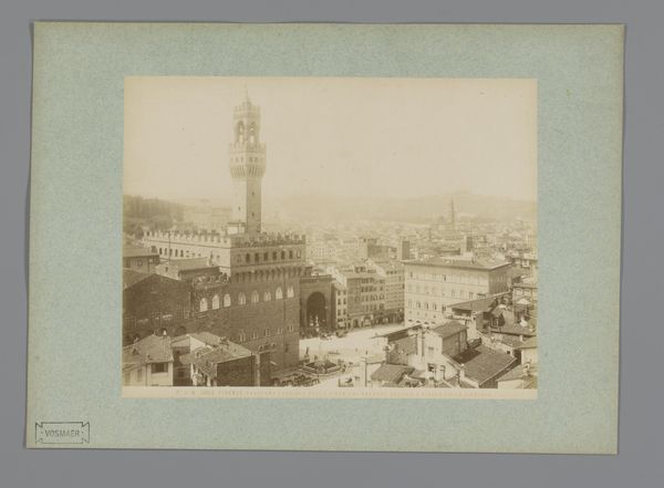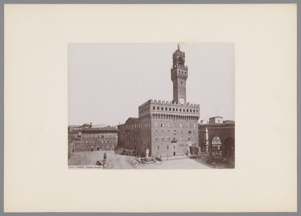 Giorgio Sommer captured this albumen print of Florence's Galleria degli Uffizi, Palazzo Vecchio, and Duomo, a city celebrated as the birthplace of the Renaissance, sometime in the mid-19th century. The photograph's composition draws the eye deep into the urban space. Sommer uses the Galleria's arcades as leading lines, framing the Palazzo Vecchio's tower and the Duomo's dome in the distance. The tonal range, from dark shadows in the foreground to the bright sky, creates a sense of depth and perspective, typical of the period. Sommer's approach to the subject offers a glimpse into 19th-century perceptions of space and power. The linear perspective, a mathematical system that creates the illusion of depth, became associated with notions of control, rationality, and order. Sommer’s photograph offers not just a visual document, but also an insight into how the formal qualities of the artwork create meaning.