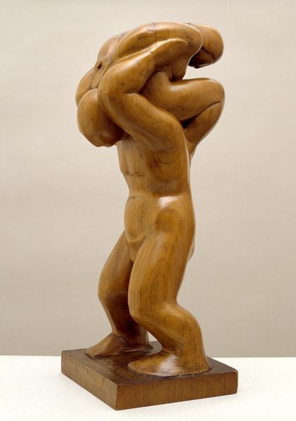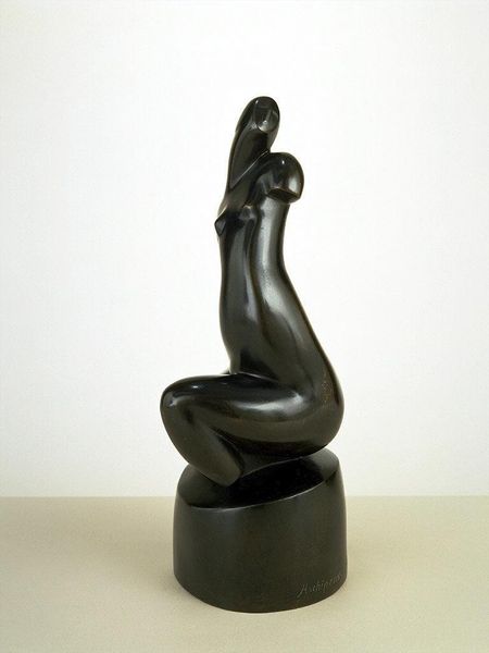 Editor: This is François Stahly's sculpture, "Growth," a bronze work held at the Tate. It's an abstract, organic form... almost like a seed sprouting. What do you see in this piece, especially concerning its material presence? Curator: The bronze speaks volumes. Consider the labor involved in its creation: the casting process, the manipulation of molten metal. It’s about transforming raw material into a symbolic form, a commodity even. How does that process influence our understanding of growth itself? Editor: I hadn’t thought about the "commodity" aspect. So, the inherent contradiction between the natural form and the industrial process? Curator: Exactly. Stahly harnesses industrial means to represent a natural process, blurring the lines between the manufactured and the organic. The consumption of art mirrors our consumption of nature, doesn't it? Editor: That gives me a lot to think about. Thanks! Curator: My pleasure. It’s all about peeling back the layers of production.