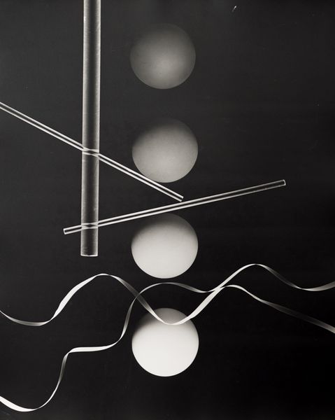 Curator: Before us, we have an "Untitled" mobile by Alexander Calder, created in 1935. The artwork, residing here at the Guggenheim, uses painted metal to engage with space. It is suspended so each element is perfectly balanced. Editor: It’s just... delightful. It looks like little planets caught in a gentle dance. So simple, yet so playful, and honestly, a bit whimsical. You almost want to give it a nudge and set it spinning. Curator: Its kinetic qualities and geometric shapes place it within the constructivist tradition, where form and function merge to question hierarchies of space and power through an egalitarian redistribution of matter and gravity. How do you see it reflecting the socio-political landscape of the 1930s? Editor: I feel its impact is more deeply philosophical. To me it’s less about the dust bowl and more about physics. I look at it, and think: precariousness, equilibrium and relative scale. Do the spheres suggest ideas of privilege vs. vulnerability or something like that? Sure, why not? Curator: Absolutely. I think your response illuminates that its beauty relies not only on how it aesthetically embodies ideas surrounding the intersectional relationship between space, matter and time, but more literally relies on actual physical laws governing gravity to achieve equilibrium. The precarious balance reminds us of our reliance on governing social structures, which have material impact, yet whose stability often seems ephemeral. Editor: Well put. I do also think of it like this – the beauty isn’t just visual, it’s felt. It connects directly with our most innate desires of stability, but by denying this it hints at change. Curator: A prescient insight, considering the turmoil that marked that decade. Ultimately the work’s abstract nature invites varied interpretations, which makes engaging with it continually enriching. Editor: Precisely. I keep coming back to it - and the little planets keep revolving in my imagination, full of potential meanings. What a wonder!