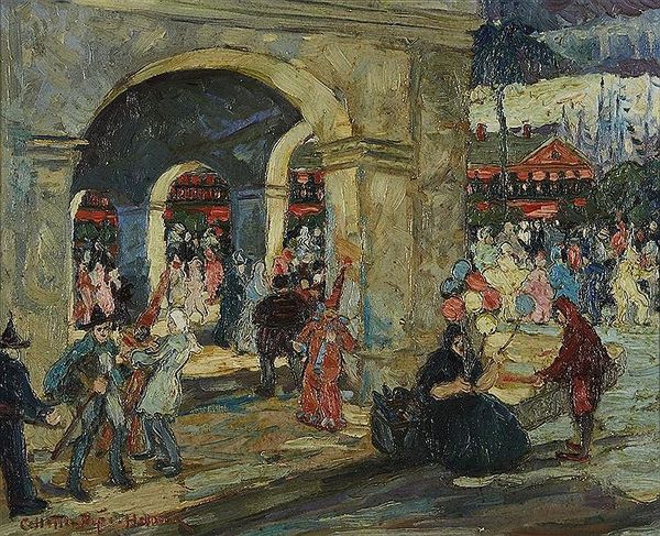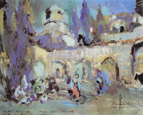 Konstantin Alexeevich Korovin made "Gudal's Castle" with what looks like oil on canvas, and it’s a riot of brushstrokes, a real physical dance with the paint. The color palette here is like a moody dream, all dark greens and grays punctuated by flashes of light and warm ambers. Up close, you can see how Korovin loaded the paint onto the brush, leaving these juicy, textured marks that feel so alive. Look at the way he renders the crowd, each figure is just a few swipes of color, and yet they have so much presence. The brushwork around the statue is particularly interesting. The texture is thick, almost sculptural, creating a focal point that draws you in. Korovin reminds me a bit of Manet, in the way he captures a scene with such immediacy and painterly skill. It’s a reminder that art is always an exchange, a conversation across time and space.