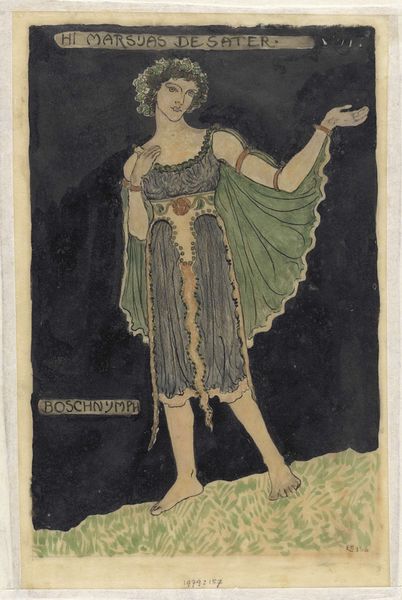 Léon Bakst made this costume design for a Syrian dancer in ‘Cleopatre’, using watercolor and graphite around 1909. It's a vibrant piece, and the materials really influence its appearance. The watercolor gives it a fluid, almost ethereal quality, while the graphite adds definition to the dancer's form and the intricate details of her costume. Bakst's technique captures the essence of movement and texture, and the processes he employed imbue the artwork with cultural significance, reflecting the exoticism and orientalism prevalent in early 20th-century European art and theater. The design likely involved skilled traditions of costume design, drawing from histories of fashion, theater, and cultural representation. While not traditional art materials in the strictest sense, watercolor and graphite were widely used for illustration and design. This blurring of lines between fine art and design is important, it highlights the labor and skill involved in costume creation, elevating it beyond mere utility. This piece challenges the traditional hierarchy between art and craft, emphasizing the importance of considering materials, making, and context in understanding the full meaning of Bakst's creation.