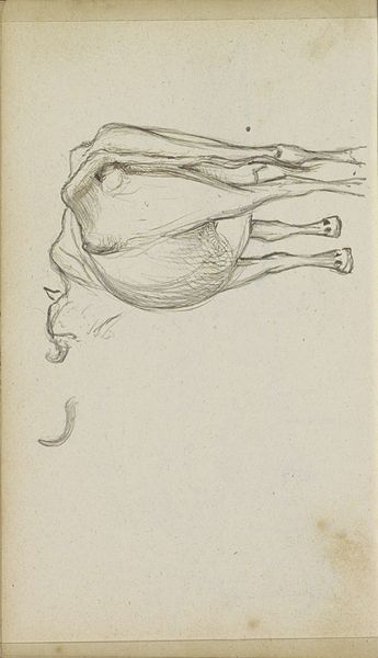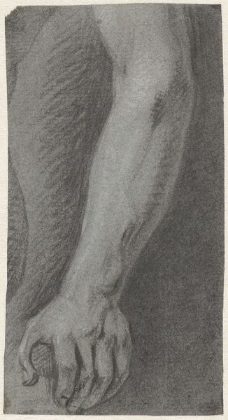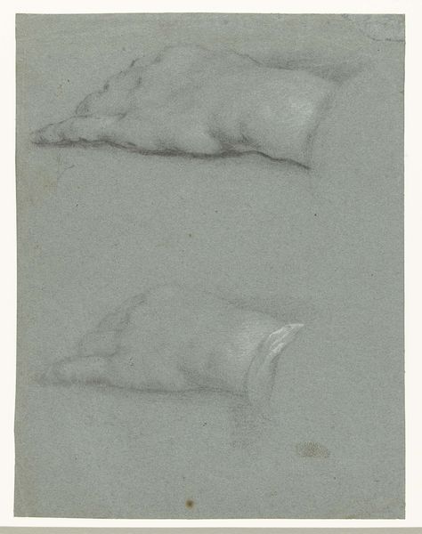 Curator: At first glance, this drawing feels incomplete, a fragment hinting at a larger, possibly biblical, narrative. Editor: Indeed. This is Washington Allston's "Bent Right Leg, for 'Dead Man Revived...'". Allston, an American painter active in the late 18th and early 19th centuries, focused quite intently on the human form. Curator: The leg itself, rendered with such careful shading, it evokes a sense of vulnerability, almost like a symbol of mortality itself. Is there a connection between the revival of the dead and bodily imperfection? Editor: It's compelling to think so! Allston's artistic circles in Europe were obsessed with antiquity, with the perfect, idealized body, so a drawing like this subverts that. He's humanizing the divine in a way that invites contemplation. Curator: It's a powerful reminder that even in depictions of miracles, the human form carries with it our shared experience of fragility. Editor: Precisely, and perhaps that's the point—to connect us to the miraculous through our own embodied existence.