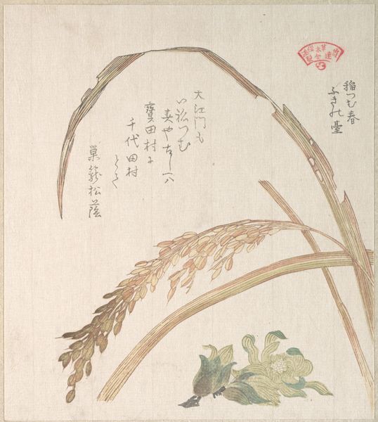 Editor: This is Kubo Shunman's print, "Magnolia (Mokuren) and Magnolia kobus (Kobushi)," part of the "An Array of Plants for the Kasumi Circle" series. It feels very delicate, almost ephemeral, especially given its presentation on paper. What strikes you about this work? Curator: The woodblock printing process itself is what draws my attention. Think of the labor involved in carving the blocks for each color, and the social structures that supported such craft. What was the role of the Kasumi Circle in commissioning and consuming such works? Editor: That's a good point; it makes me consider the commercial aspect of art. Curator: Exactly! How does this print, likely made for an elite circle, engage with the natural world and perhaps even with ideas of luxury and refinement through its materials and production? Editor: So, by looking at the process and context, we understand more about the values of the society. Curator: Precisely. It's about questioning the art object's journey, from the artist's hand to the collector's wall, and what that journey reveals about the broader world.