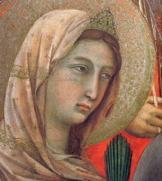 This detail of Mary from Pietro Perugino's "Pieta," housed in the Uffizi Gallery, captures a heart-rending moment with potent symbols. Her sorrowful gaze and the somber veil speak to centuries of mourning iconography. The veil itself, a common motif, hearkens back to ancient Roman depictions of grieving figures, their heads covered in a gesture of deep lament. Across cultures, this act signifies not just loss, but also protection and a turning inward, a separation from the world. Think of the veiled figures in funerary art from antiquity to today, each a link in a long chain of human sorrow. This symbol, charged with emotional weight, transcends time. Perugino taps into this collective memory, engaging viewers on a subconscious level, reminding us of the cyclical nature of grief and the enduring power of shared human experiences.