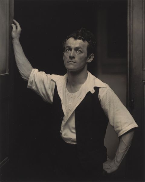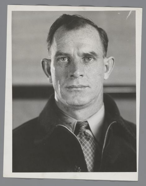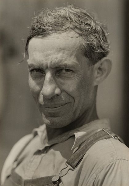 Editor: This is Walker Evans's photographic portrait, "Floyd Burroughs." The lack of pretense is striking. What layers of meaning do you find in this seemingly straightforward image? Curator: The eyes hold a universe, don't they? Evans captures Burroughs not just as an individual, but as a symbol of resilience. Consider the overalls: they speak of labor, of an identity forged in the earth. What stories do you imagine are etched in those weathered lines? Editor: Perhaps stories of hardship and endurance. I’m starting to understand the significance of these visual cues. Thanks! Curator: Indeed. The image echoes across time, reminding us of the human spirit's capacity to endure.