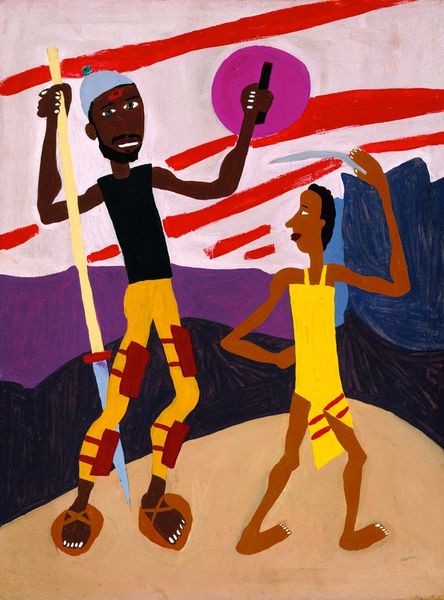 William H. Johnson made this painting, "Three Friends," with what looks like acrylic or maybe gouache; it's all about the matte surface and simplified shapes. You can really see the process, there's a directness to the application of the paint. I love the way he lays down these blocks of color, like the solid purple of the figure on the left. It butts right up against the brown of the face. The flatness reminds me of folk art, or maybe even a poster. And then, there's that pale pink shape in the middle, nestled between the figures – what is it? A shared garment, a symbolic space? It’s so ambiguous. Johnson's work reminds me a little of Jacob Lawrence, both artists used a similar style to depict scenes of Black life and culture. Ultimately, it's the mystery that grabs me. This painting is more about feeling than knowing, and that’s what makes it so powerful.