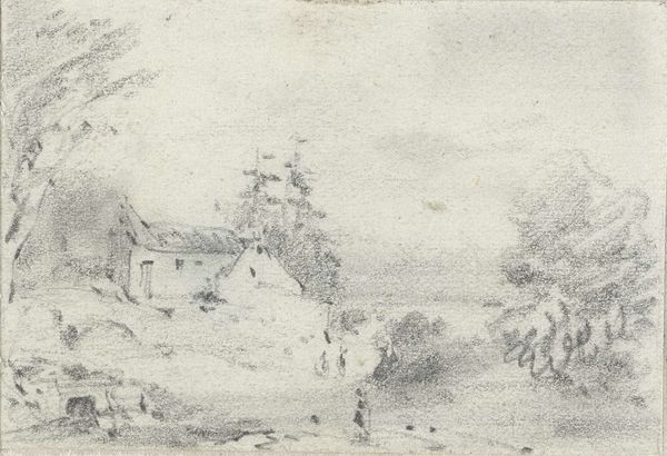 Anthonie Waterloo's "Landelijke gebouwen in Lintfurt bij Kiel" is a drawing rendered in delicate lines that capture a rural scene. The composition organizes the buildings and trees along a diagonal, creating a sense of depth and movement through the landscape. Waterloo's choice of monochrome enhances the textural details of the buildings and foliage, bringing out the interplay of light and shadow. The varying densities of the lines create a nuanced effect, and subtly suggest the atmospheric perspective. The drawing reflects a semiotic encoding of nature, where each element is meticulously rendered to convey not just visual information but also a sense of place and time. It presents a landscape where the architectural and the natural converge, subtly challenging the viewer to reconsider conventional perceptions of space and representation. Waterloo masterfully uses line and composition to invite us into a contemplative experience of nature, meticulously constructed.