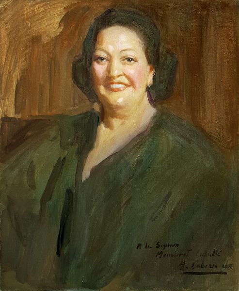 Curator: This is "Nadège Picq," an oil painting created in 2013 by Gazmend Freitag. The work immediately conveys a sense of intimate familiarity. What’s your first impression? Editor: I'm struck by the portrait's overall warmth. There’s a feeling of kindness and openness emanating from the subject's expression and the soft brushstrokes. Curator: I agree. The eyes seem to hold centuries of wisdom, or at least a knowing glance that implies an inner depth. What could the artist be suggesting? Editor: Freitag has chosen to represent her in a way that feels approachable. The slightly turned head and the gentle smile imply that this might be a representation of strength, kindness and resilience, typical features that are usually sought in community leadership, perhaps pointing to an understated yet essential aspect of societal strength. Curator: That makes sense when considered through the prism of female leadership and its changing representation in modern painting. But look closer at details, such as her jewelry or her half-smile. What symbols may these embody? Editor: Her hoop earrings might be visual representations of community ties. While their circular shape speaks to the idea of continuity and wholeness, or cycles of growth and connection. As if they embody the continuous support systems and bonds. I wonder whether they represent, for example, social movements the sitter was linked to. Curator: Those could signify the circles within which one lives. Furthermore, if this individual was committed to working for a cause or had progressive ideas about making a positive impact, this painting could represent one’s ability to see beyond limitations. I see this gaze embodying what Jung called "active imagination". Editor: I would not completely rule out the idea of individual agency in all this. While your explanation sounds compelling, are we not reinforcing patterns that reduce this portrayal to a symbolic dimension? I’m more intrigued to know who she was and what role her community occupied within the society. Curator: Of course. We ought to keep searching for such data that gives an identity back to the portrayed person. Otherwise, we could interpret all of it based only on culturally inherited views on power, femininity or race. Editor: It certainly serves as a prompt to delve deeper into understanding female representations, to examine who they are, and their socio-political backgrounds, instead of simply attributing symbolic meaning based on visual features. Curator: Precisely. A powerful invitation to examine both ourselves and the broader cultural narratives that shape how we interpret the world around us.