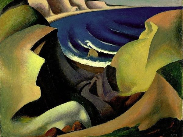 Victor Brauner painted this 'Dobrudjan Landscape', likely with oils, using a simplified, almost geometric approach to capture the scene. The forms are bold, the colours earthy yet still surreal; this isn’t just a picture, it’s a feeling. Look at how Brauner handles the paint, not trying to hide the brushstrokes but laying them down like tiles, building up the image piece by piece. The clouds, big fluffy dollops of white, contrast with the angular shapes of the houses and hills below. The textures are smooth, but you can still feel the materiality of the paint and how the artist has worked it across the surface. That stark white zigzag, slicing through the lower right, does it represent a road or river? It’s a powerful stroke that divides the canvas. It reminds me a little of Giorgio de Chirico. There's a similar sense of mystery, a hint of something not quite real, a space of pure imagination.