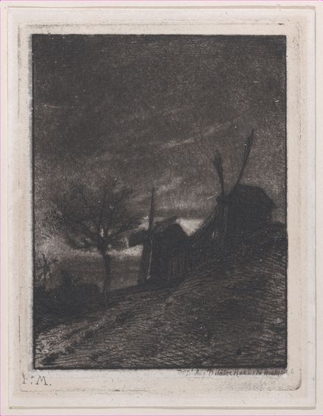 Joseph Pennell created "The Lake of Fire" using lithographic crayon and ink. The print plunges us into an industrial nightscape, dominated by towering structures and plumes of smoke. The dark, almost monochromatic palette evokes a sense of foreboding, contrasting sharply with the fiery glow emanating from the molten material. Pennell masterfully employs contrasting light and shadow to create depth and drama. Notice the verticality of the factory chimneys and buildings, which are echoed in the reflections on the water, creating a sense of mirrored symmetry. The use of linear strokes give texture to the scene, suggesting both the solidity of the industrial structures and the ephemeral quality of the smoke and fire. This work raises questions about the romanticization, and also the possible demonization, of industry during the late 19th and early 20th centuries. Does Pennell celebrate the power of industry, or does he warn of its destructive potential? The composition, with its stark contrasts and unsettling beauty, leaves room for ongoing interpretation, and invites us to consider the complex relationship between humans and industrialization.