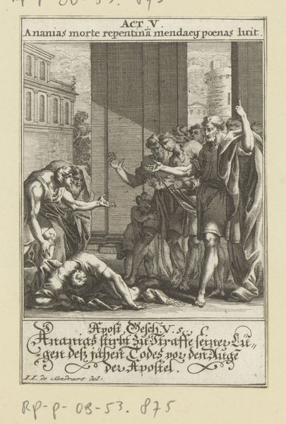 Editor: We're looking at "The Meeting between Saint Norbert and Pope Calixtus II," a 1622 engraving by Cornelis Galle I, currently residing in the Rijksmuseum. The detail is astonishing! I'm immediately struck by the formal composition; everyone is so carefully arranged. What do you see in this piece? Curator: Ah, yes! It’s a visual feast, isn't it? Galle's Baroque sensibilities really shine here. The crisp lines, the clear depiction of status through gesture and attire – it's like a carefully choreographed dance. It’s an engraving, of course, so think of the labour that went into it! But beyond the technique, which I love, is the story, right? Norbert, on his knees, offering what looks like laurel… acceptance? Penance, perhaps? And the Pope, bestowing grace? It has a timeless appeal, wouldn’t you say? Editor: It feels very… staged, almost theatrical. Curator: Indeed! And deliberately so. The artist probably wanted to emphasise the power of the papacy, using Norbert as a symbol of piety and devotion. He wants you to feel the weight of history and tradition. Look at the crowd flanking the main figures! It lends even greater impact to that moment of supplication. What strikes *you* most? Editor: Probably that contrast - between Norbert’s humbled position and the Pope's upright stance. There's this real sense of hierarchy… but also of connection, like something is being transferred between them. Curator: Beautifully put. A real conversation happening in a static scene. Editor: This artwork provides us with many things to look at. It's a captivating story indeed!