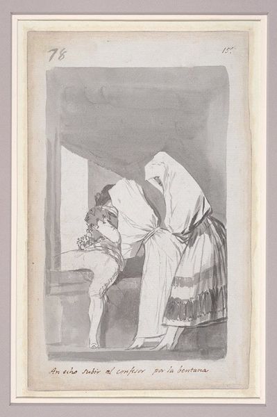 Editor: Here we have "Maja and an Officer," a pencil drawing by Francisco de Goya, created sometime between 1795 and 1797. It feels very intimate, almost like a stolen moment. What stands out to you? Curator: I see a record of artistic labour. Consider the immediacy of pencil on paper – a relatively accessible technology, even in Goya’s time. It democratizes image production, compared to, say, oil painting commissioned by the elite. Editor: So, you are saying the medium itself speaks to the social context? Curator: Precisely. And what does it tell us about production? This isn't just a drawing; it’s a potential prototype. The materials chosen facilitate experimentation, reproduction, and wider dissemination of Goya’s vision. Note the visible page numbers - 22 and 3- at the top of the image. Editor: I hadn't considered that! So it's less about the finished piece, and more about the means to that end? Curator: Indeed. Focus on the “how” and the “why.” Goya isn’t just depicting a scene. He is documenting a process, making his art and artistic process accessible to others by distributing copies, thereby changing modes of art consumption. Editor: That gives me a completely new understanding of this drawing. Curator: It speaks to art's evolution, its availability, and consumption. Hopefully this dialogue is helping listeners broaden their appreciation of the context around artmaking. Editor: I will certainly view Goya and other drawings with a materialist lens going forward!