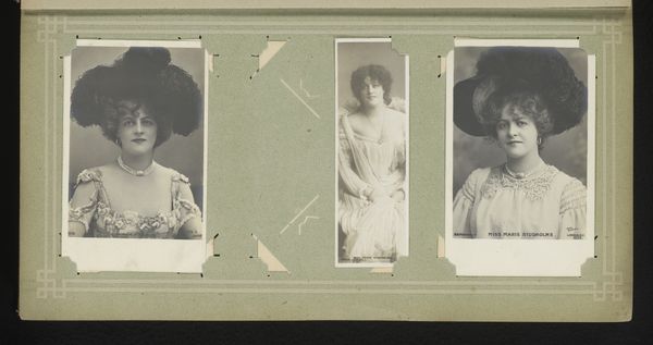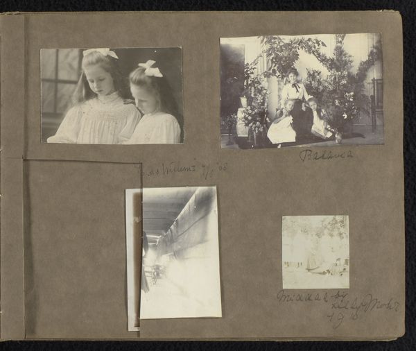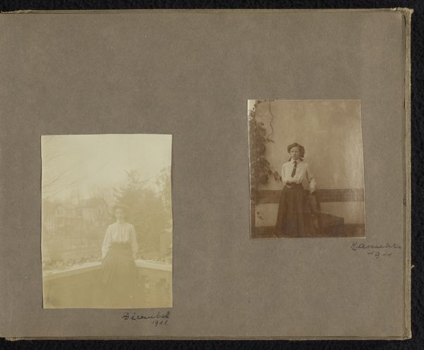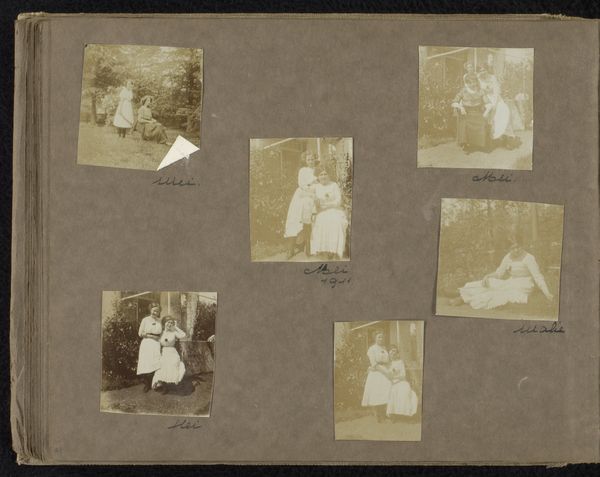 Editor: Here we have "Vijf foto's van mensen uit de omgeving van Loentje Onnen, onder andere Johanna Uhlenbeck, Lilly en Tilly," likely from 1910-1911, consisting of albumen prints within an album. The soft focus lends this piece an intimate, almost dreamlike quality, wouldn't you agree? What historical context can you offer for how Onnen captured her subjects? Curator: It's key to understand that these images were created during a time when Pictorialism was at its peak. These women, Johanna, Lilly and Tilly, appear within their domestic spaces, reinforcing early twentieth century notions of gendered sphere. How do you see that these visual choices engage with social ideas and expectations? Editor: I see that. There is a kind of staging and performance happening that feels revealing of its era. These women may have had agency, but only within specific spaces. I wonder about Onnen’s perspective, as a female photographer documenting other women. Curator: Exactly! It begs the question, what stories do these photographs tell beyond their surface? In your view, how might gender dynamics and social class interplay within Onnen's work and what might be revealed, and concealed? Editor: That's something I hadn't considered. Onnen's work provides glimpses of a time and place, a view into lives that might otherwise be unexamined. The act of selecting, framing, and including those particular women already seems like a strong intervention. Curator: Precisely. Through this lens, we can challenge traditional historical narratives and engage more thoughtfully with the power dynamics inherent in image-making and the way photographic works serve as critical sites for social commentary. What could further inquiry tell us about women during that period? Editor: It’s clear how Onnen used her position as photographer to subtly push against social norms, while, documenting her community, as her sitters played both a real and symbolic role in the composition of social class during her time. Thank you! Curator: Indeed. It has been my pleasure.