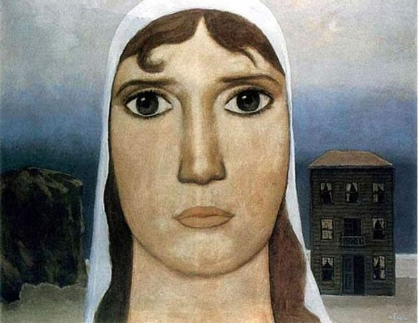Kuzma Petrov-Vodkin made this painting, Virgin of Tenderness evil hearts, with oil on canvas, and the colors... well, they're not messing around, are they? A deliberate blend, a kind of controlled clash between the red and blue, and it feels very Russian somehow. Look at the Virgin's hands, how they’re raised, almost flat, confronting us. Those open palms make me think about the physicality of painting itself: the hand, the surface, the gesture. They’re not soft or delicate. It’s like the artist wanted us to feel the weight of the paint, the canvas, the whole damn thing. I mean, there's a crucifix in the background, so this isn't just an exercise in color theory, but the way Petrov-Vodkin handles the medium it feels like he’s pushing against the traditions of religious painting. This picture reminds me a little of some of the early Italian modernists, like the Futurists, who were also trying to find new ways of representing movement and emotion, and really shook things up. Ultimately, this piece isn't just about tenderness. It's about the struggle to make something new.