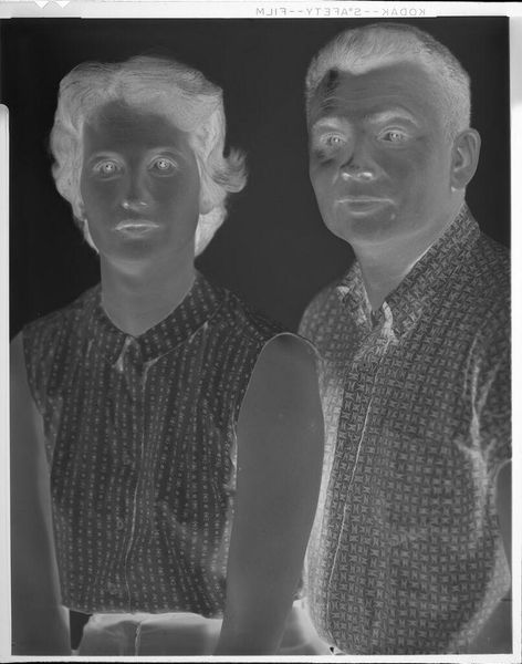 Curator: This is an untitled portrait of a young man, attributed to Lucian and Mary Brown, held here at the Harvard Art Museums. Editor: There's an ethereal quality to this piece. It feels almost like a dream, rendered in monochrome. Curator: The negative print adds to that, I think. The reversed tones give it an otherworldly feel. Consider the social context, too. Photography like this offered accessibility but also control over representation. Editor: Definitely. And the sharp collar against the soft focus creates a striking contrast. I wonder about the young man's identity. His gaze is direct, but there's a sense of vulnerability. Was this intended as a formal portrait or something more intimate? Curator: That's precisely what I'm hoping future research will tell us. The Browns were active in a time of great social upheaval. It would be fascinating to know how their work intersected with the era's politics and identities. Editor: It really makes you think about who gets to be seen and how they're represented. I’m left pondering the politics of visibility, then and now.