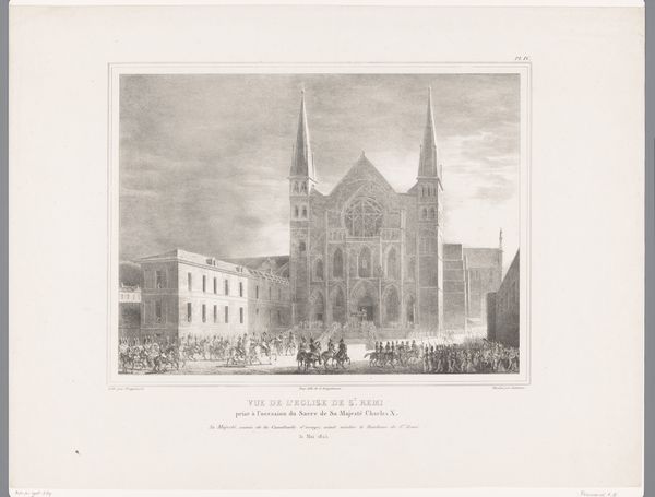 Curator: This engraving by Johann Gabriel Friedrich Poppel, dating from 1858, is titled "Gezicht op de Grote Markt in Zwolle," or "View of the Great Market in Zwolle." Editor: My immediate reaction is of stillness, a kind of composed tranquility, despite the implication of bustling market life. Curator: Notice how Poppel employs delicate hatching and cross-hatching to build form and texture. The crisp lines create a striking contrast between the architecture and the open sky. Editor: It's a very picturesque and bourgeois scene. We can read this public space as a place of commerce, but also consider it a backdrop for class performance and social interaction—who had access, and under what conditions? Curator: Precisely. The buildings anchor the composition. Consider the architectural details, like the Gothic lines of the church that contrasts to the straight horizontal line of the building adjacent. Editor: The buildings loom—emblems of civic and ecclesiastical power—while the ordinary people appear small and somewhat incidental within the vast space. Do you think Poppel sought to subtly reinforce a specific hierarchy? Curator: Perhaps, or maybe he was just focused on the geometric rigor and harmony within the space itself, using these human figures to emphasize the sheer scale of the square. The tonal variations are really impressive; Poppel masterfully uses shading to guide our eye. Editor: And I see how the composition also serves to codify and reinforce this period's understanding of social structures in Zwolle, where power dynamics shaped how the marketplace operated, for some. It all comes down to that perspective doesn't it? Curator: Ultimately, yes. Studying how Poppel structures the composition and crafts tonal variation opens up a deeper awareness of perspective, in many aspects of life, and how such a specific rendering gives rise to individual perspective and subjective understandings. Editor: A poignant rendering—raising profound points that the simple name on the wall cannot convey on its own!