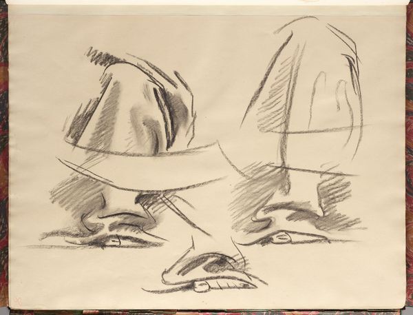 Editor: Here we have John Singer Sargent's preparatory sketch, *Studies of Knees for the Law*, connected to his "Israel and the Law" mural at the Boston Public Library. It feels unfinished, yet monumental, what do you make of it? Curator: Sargent's mural project became controversial, especially his representation of religious figures. This study of knees speaks volumes about the power dynamics inherent in "the law." Editor: Power dynamics? Curator: Yes, think about it: the act of kneeling suggests submission, doesn't it? What does it mean to depict the *act* of kneeling in the context of law and religious identity? What are the implications? Editor: So, this simple sketch is really a complex commentary on submission and religious identity? Curator: Precisely! Sargent's work engages with ongoing debates about public representation and cultural identity. Editor: I never thought of it that way! This definitely gives me a new perspective.