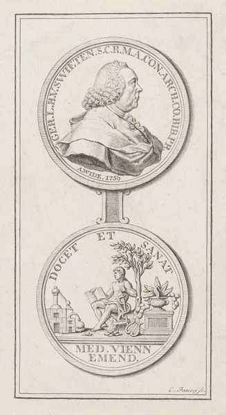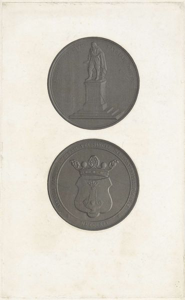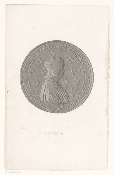 Editor: So, here we have "Penning met afbeelding van Lodewijk XII van Frankrijk op recto en een egel op verso," which roughly translates to "Medal with image of Louis XII of France on the front and a hedgehog on the back". It’s a drawing, or perhaps an engraving, by Augustin François Lemaître, created sometime between 1807 and 1870. The mood is surprisingly whimsical. I'm really curious about the symbolism here. What's your take on this work? Curator: Whimsical is a fantastic word for it! It’s like a serious portrait met a children’s book illustration and decided to have tea. Lemaître, working in that Neoclassical/Academic style, does this remarkable job of straddling worlds, doesn't he? You've got Louis XII looking all dignified, surrounded by fleur-de-lis and Latin inscriptions on one side, then BAM, a chubby little hedgehog wearing a crown! That juxtaposition is precisely the entry point to unlock what intrigues me most about this piece: power juxtaposed to humility, might to... cuteness? Do you agree? Editor: Absolutely, the hedgehog really throws me off. I mean, why a hedgehog? It's charming but feels like it clashes with the royal portrait above. Curator: I read the hedgehog symbolizes Louis's policy of fiscal responsibility and being conservative with finances; however, I'd much prefer thinking that Louis just loved hedgehogs! Art needs interpretation to open a dialogue, isn't it? Jokes aside, sometimes official narratives mask a much simpler human element. It is this interplay of narratives, however contradictory, that fuels creativity, wouldn't you agree? Editor: Yes, definitely! I initially thought of this as just a historical record, but thinking about the multiple layers makes it way more engaging. Thanks! Curator: My pleasure! Always a thrill when something seemingly formal reveals its quirky side. Keeps us on our toes!