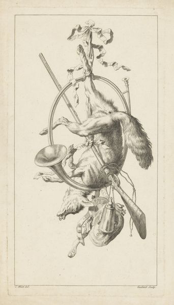 Paul Angier made this print, "Trofee met konijnen en vogels," sometime in the late 18th century. It's a detailed image made through etching, a printmaking technique where lines are incised into a metal plate with acid, then inked and pressed onto paper. The effect is quite different from drawing, creating a tactile and graphic language. The etched line allows for a high level of detail which you can see in the rendering of the animals' fur and feathers. Consider how this image was likely made for a collector, not a hunter. It's a luxury product, an aestheticization of the hunt, and an index of human skill. It takes nature, brings it to heel, and reproduces it for further consumption. It is a potent reminder that even the most seemingly straightforward image carries within it an entire world of meaning.