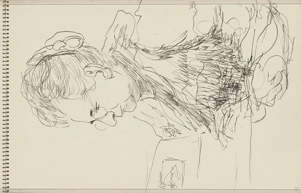Editor: So, here we have Isaac Israels's "Vrouwenhoofd," a pencil drawing from around 1915 to 1925, at the Rijksmuseum. It feels very intimate, like a stolen glance. What strikes you most when you look at it? Curator: The unfinished nature of the drawing is interesting. See how the lines seem to search, almost tentatively, for the essence of the subject? It speaks to a process of unveiling, not just the woman's likeness, but also perhaps an emotion or inner state. Does the tilted head remind you of anything? Editor: Now that you mention it, the tilt does bring to mind images of the Virgin Mary, but here, without the religious context... is there still some echo of that symbolic vulnerability or piety? Curator: Precisely. Artists often tap into a reservoir of pre-existing imagery. Think of the pre-Raphaelites' use of medieval symbolism or consider classical ideals of feminine beauty throughout different eras. By consciously or unconsciously alluding to those familiar archetypes, they imbue their work with layers of meaning that resonate on a deeper, almost subconscious level. This drawing is an exploration through those established symbols and the expression of modernity in form and aesthetics. What do you think it suggests in terms of how our ideas about the ideal woman may have been shifting? Editor: That's fascinating. It highlights the way art carries cultural memory, and this simple sketch seems to question or perhaps even soften those long-standing ideals of feminine representation. Thanks. It’s given me so much to think about! Curator: Indeed! And these sketches offer a different intimacy – a chance to witness how our preconceptions meet a modern gaze.