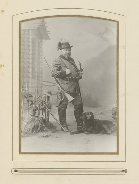This is a portrait of Ernest Meissonier by Robert Jefferson Bingham, captured in a photograph of the mid-19th century. Meissonier, the celebrated painter, stands confidently, palette and brush in hand, beside his faithful dog. During this era, photography was emerging as both a documentary tool and an art form, often intertwined with social identity and status. Bingham, as a photographer, was in a unique position to capture the likeness of a renowned painter. The image tells us something about the artistic and social circles of the time. The photograph’s composition, with the artist in his domestic setting, complete with dog, easel, and painting, speaks to the way artists presented themselves and were perceived by society. Meissonier’s posture exudes the self-assuredness of a man at the height of his career. Consider how this image, a carefully constructed portrayal, reflects both personal identity and public persona in a rapidly changing world.
