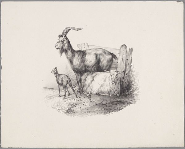 Editor: So, here we have Robert Hills' "Cows," an etching from the Harvard Art Museums. The composition feels very balanced despite the cows being off-center. What stands out to you about the piece? Curator: Observe the artist's meticulous use of line. Notice the varying densities, creating an illusion of volume and texture on the cows. How does the linear rendering contribute to your understanding? Editor: I see what you mean, the hatching and cross-hatching really give form to the animals. It almost feels like I could reach out and touch their hides. Curator: Precisely. Hills masterfully employs the etching technique to explore the play of light and shadow across their forms. It is a study in form through purely linear means, wouldn't you agree? Editor: I think I do! It's fascinating how much depth he creates with just lines. Curator: Indeed, it showcases the power of formal elements in conveying volume and texture. Editor: I hadn't thought about it that way before; I will definitely pay more attention to line work in the future.