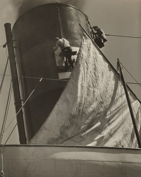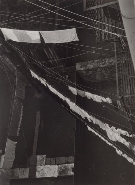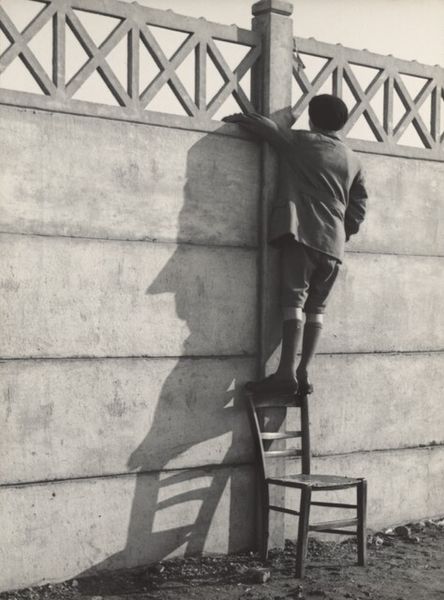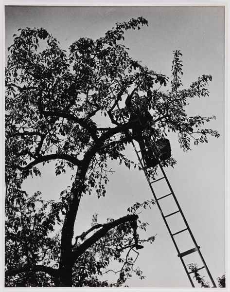 Ilse Bing made this black and white photograph, Street Fair, Paris, at an unknown date. The high contrast in this image lends it a dramatic, almost surreal quality, as if the everyday is caught in a moment of high stakes. Look at the way the light falls across the scene, the stark whites against the deep blacks, creating shapes that are both abstract and recognizable. The texture of the photograph itself, that smooth, almost glassy surface, contrasts with the rough energy of the fairground ride in motion. The dark, looming canopy at the top seems to press down on the precarious act below, and those blossoming trees in the background, a soft, blurred counterpoint to the sharp lines of the machinery. I am reminded of some of the earlier, more unsettling images of Diane Arbus. Both artists find an unnerving beauty in the ordinary. Bing leaves us suspended, questioning what is thrilling and what is frightening, embracing the ambiguity, not just of the image, but of life itself.