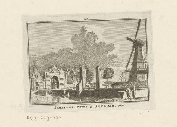 Curator: This is Abraham Rademaker's "Gezicht op Overschie," an etching created sometime between 1725 and 1803, and part of the Rijksmuseum's collection. Editor: It’s such a tranquil scene. The muted tones and precise lines evoke a sense of serene simplicity. It gives off this very understated and gentle atmospheric feel, doesn't it? Curator: Indeed. Rademaker's skillful manipulation of the etching process allowed him to capture the quiet rhythms of Dutch life. It is the kind of image that reminds us of how landscape depictions like this reinforced local identity. Consider the materiality here. The use of etching enabled printmaking with a reproducible distribution that played a critical role in shaping a sense of place and belonging during the Dutch Golden Age. Editor: Right. Etchings democratized images. They were cheaper to produce and purchase compared to paintings, which meant that more people had access to art. This image shows a rather idealized vision of rural labor with people shown enjoying water transport and daily work alongside a church. Were prints like this targeted toward a rising middle class eager to own scenes showing elements of Dutch Golden Age culture? Curator: I believe so. Prints, including etchings like this one, were definitely produced with the intent of broad distribution across all emerging segments of society. They served the critical social function of shaping perceptions. Also consider the art market. Editor: And I see that even the choice of depicting a specific village plays into that as well. Rademaker likely understood there was a market for specific landscapes that people identified with personally, maybe people commissioned views of their native area. The work operates within the framework of both landscape and genre art. Curator: Precisely. What may seem like a straightforward landscape scene also highlights the evolving commercialization and public function of art in Dutch society at the time. The means of its production enabled mass distribution and the content, as you pointed out, played a vital role in reinforcing the social order of things. Editor: This etching, then, encapsulates not only artistic technique but the burgeoning culture of art consumption that defines an era. Curator: And it stands as a small, quiet reminder that how and why something is made matters as much as what is depicted.