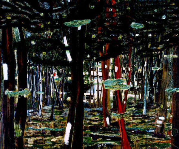 Erik Sigerud made this painting called 'At the Border Between the Official and the Excluded' and what hits me first is the riot of greens and blues, punctuated by these almost childlike daubs of bright color, like the neon sticks at the top left. You can tell right away that Sigerud is an artist who isn't afraid to let the process show, to let the paint do its thing. Looking closer, you notice how the whole scene is built up with layers of thin washes, like watercolors, but then there are also these moments of thick, juicy impasto. Like that tree in the foreground - you can practically feel the weight of the paint, but it's still gestural and fleeting. It's interesting how the color is used to create a sense of depth, even though there are also these moments where the perspective just collapses, like in the reflection of the water. It reminds me a bit of early Tal R, who also likes to mix the innocent with the slightly unsettling. Ultimately, this piece is a reminder that art is a conversation, a back-and-forth between the artist, the materials, and the viewer.