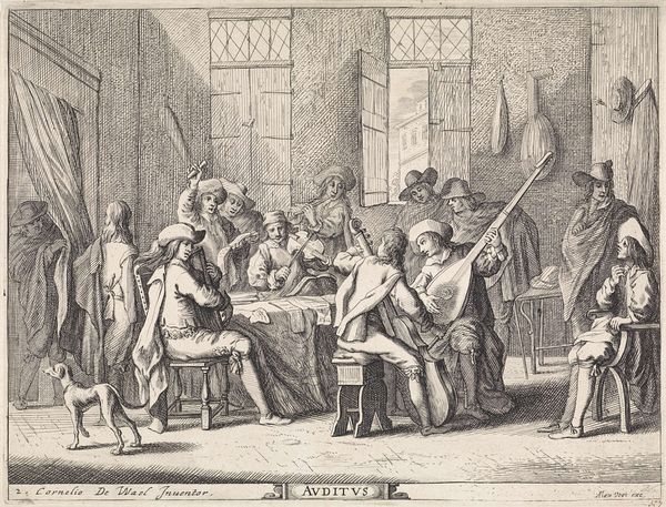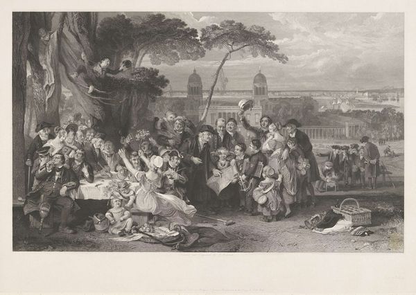 John Burnet created this print depicting pensioners in Chelsea gathered around a table reading news about the Battle of Waterloo. The composition is striking, organized around a central table where figures are intensely focused on the news, creating a concentrated point of interest. The artist uses a high level of detail and tonal range, providing a narrative depth and evoking a strong sense of place and emotional investment. Burnet has skillfully arranged the figures to maximize visual impact and narrative clarity. The use of detailed engraving adds to the atmosphere and enables the artist to capture different reactions and personalities. The strategic positioning of each figure enriches the context of the scene, contributing to a complex interplay of individual stories and a shared moment in history. The detailed rendering and balanced layout emphasize the narrative aspects of the artwork, inviting viewers to interpret the historical and social implications of the scene. The formal elements work in harmony to reflect the communal impact of historical events.