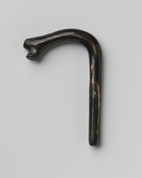 This is a cane handle, probably from the Netherlands, maybe made of black horn, with a silver-colored plate. The horn has a deep polish, and this makes me think about craft and the human hand. I'm drawn to the polished horn and the way the light plays on its surface, it feels luxurious. You see the shape is functional, made to fit the hand, but there's also this attempt to elevate the everyday object through detail. Think about the textures here – the coolness of the silver against the warmth of the horn. It reminds me a little of the work of Brancusi, taking simple materials and elevating them to art through form and finish, making us consider the space around them, the light, the experience. What do you think?