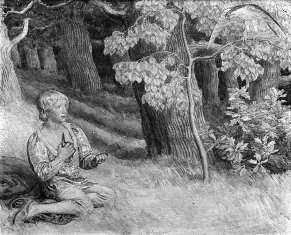 Curator: The first thing I notice is how the figures blend seamlessly with their surroundings, yet there’s a pronounced contrast between the shade in the foreground and the bright scenery behind them. It evokes a sense of privacy, perhaps a momentary escape. Editor: Henri Lebasque painted "Landscape with Figures" sometime between 1909 and 1913. It’s an oil on canvas currently held at the SMK, the National Gallery of Denmark. What I find most intriguing is the symbolic use of shade and light. The shadowed foreground suggests the complexities of personal relationships and inner thoughts. What do you think about the choice of figuration over, say, an abstract engagement with light here? Curator: Given Lebasque’s place within the Post-Impressionist movement, which valued the subjective expression of the artist above objective naturalism, it appears he wants us to recognize the scene. He captures fleeting moments of modern life but with this particular kind of emphasis, perhaps it aims to subtly comment on societal values, the increasing importance of leisure time, and even the changing roles of women in that era. There are three of them. Is that important to the reading, symbolically? Editor: Precisely. These women, adorned in their period hats and dresses, might signify more than just leisurely figures. Headwear specifically, from antiquity, frequently connoted station or class, of course, so in this case are their choices an engagement with a desire to convey something specific to Lebasque's own contemporaries and patrons? There’s a distinct layering of implied meaning. And notice, too, the loose brushstrokes: not only do they add movement and vitality, suggesting a modern experience, but in their execution is a reference to tradition: is the man just to be seen from a distance or as separate? Curator: Absolutely. It suggests the fleeting, transient nature of Impressionism while providing a visual representation of the era’s ideals regarding beauty, family and leisure, what you could call their cultural currency. The landscape almost takes on an allegorical dimension. And even from the light you could perhaps propose some ideas: the darkness around the foreground perhaps connoting difficult times and a brighter, sunlit and prosperous era beginning or imminent beyond. Editor: An astute point. The image then, when you frame it within the period’s context, is quite layered. Curator: It goes beyond mere depiction; it engages the viewer in a discussion on the contemporary cultural moment, with this symbolic encoding adding complexity to what appears, at first glance, to be an ordinary scene. Editor: Ultimately, "Landscape with Figures" serves as a valuable case study of the subtle but poignant narratives conveyed through impressionistic approaches. Curator: A rewarding experience that demonstrates that public life has the capacity to be anything but ordinary.