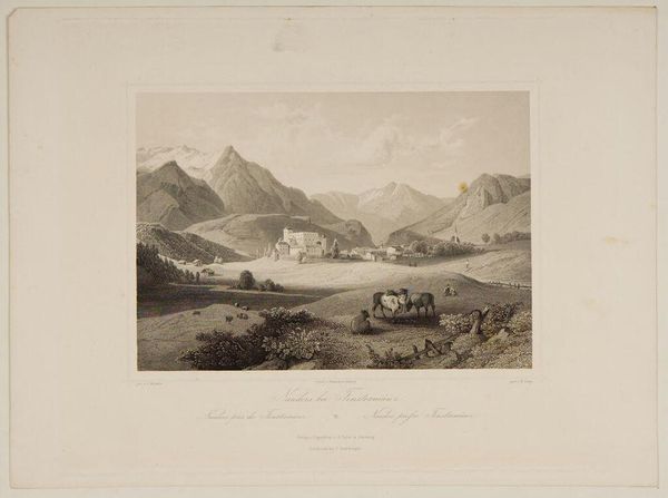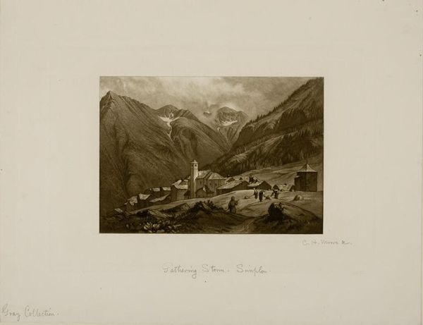 Curator: Looking at Robert Hinschelwood's rendering of "Yosemite Valley," it seems like a meditation, almost hushed. Editor: Yes, there's a tranquility. You can almost feel the cool air coming off the water. I wonder how the materials--the paper, the ink-- contributed to this calm? Curator: Well, consider the printing process. The labor, the craft, all channeled to capture a specific vision of nature for mass consumption. It reframes Yosemite as a resource, aestheticized and available. Editor: But beyond that, it's about our connection to wild spaces. I feel a longing for those mountains, for that sense of scale...a feeling that transcends the economic underpinnings of the piece. Curator: Maybe. But recognizing the mechanics helps us see beyond the surface to the system at play. Editor: I think the piece itself offers a beautiful tension. The world is complex and our response to it is even more so. Curator: Precisely, this image is more than just a picture; it's a cultural artifact to understand and appreciate in its context. Editor: Indeed, a fascinating journey into the intersection of nature, art, and society.