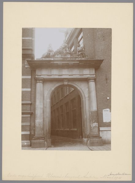 Rudolf Albrecht created this photograph of the entrance to the Königliches Progymnasium in Rothenburg ob der Tauber. The image captures a moment in the history of education and institutional architecture in Germany. Looking at the image, we see an imposing arched entrance, framed by classical architectural details. Above the door, sculptural elements include what appears to be a coat of arms, signaling the importance of this institution within the social fabric of the time. The photograph, by its nature, documents not just the physical structure, but also the social values attached to education and civic identity in late 19th or early 20th century Germany. Historical records, architectural surveys, and local archives could reveal more about the school's role in shaping the community and its connections to broader educational reforms. By examining the visual codes embedded in the photograph, we can gain insight into the power dynamics and cultural meanings that shaped this institution.