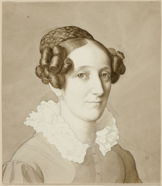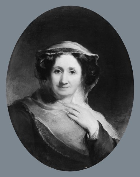 Curator: Standing before us is a photograph titled "Mrs. George P. Burne," captured around 1852 by John Wood Dodge. There's an incredible serenity emanating from this oval portrait, don't you think? Editor: Indeed. My first thought goes to the remarkable, almost ghostly, luminescence. I wonder what sort of labor went into preparing the photographic materials, like the plates and chemicals for creating such a soft portrait. Curator: It’s haunting in a way. It’s romantic, but the details feel incredibly modern at the same time. I wonder what Mrs. Burne thought of seeing herself rendered in such stark detail for what seems like the first time ever. Editor: One can almost imagine the artist mixing collodion and silver nitrate under a dim red light—that’s quite the skilled, labor-intensive process. That brooch, for example, glitters with potential meaning—what was it made of and what materials were used? Was the adornment strictly aesthetic or did it serve to signify familial or societal standing, etc.? Curator: Her jewelry catches my eye, too! And that incredible white bonnet, as delicate as sea foam, framing her face. It reminds me of stories about women pressing flowers. It's capturing something ethereal and yet quite earthly about beauty at once. Almost as if to imply that she is not vain, only aware. Editor: The image raises interesting questions about class, too. Only the upper classes could afford to get a photograph taken back then, right? Mrs. Burne appears rather well-kept, what kind of consumption were they able to participate in, who did she rely on? I wonder, also, how she perceived the rapid advancements in image production taking place at this point. Curator: Yes, it’s a statement in its own right. She must have possessed a deep sense of awareness—like standing at the cusp of change, both for herself and the entire world. To have a moment memorialized like this when photography was not only an innovation, but something otherworldly must have felt quite profound. Editor: I agree. In that respect, perhaps a photograph says as much about material circumstances as it does about artistic choices and personal expression. Considering this photo in relation to materiality definitely emphasizes how class, and consumption would determine Mrs. Burne’s reality, her representation and legacy, too. Curator: Absolutely, it really underscores how the tangible details can so poignantly tell so much about her, us, life itself, really. I shall revisit the image again sometime soon with even more scrutiny. Editor: Me too.