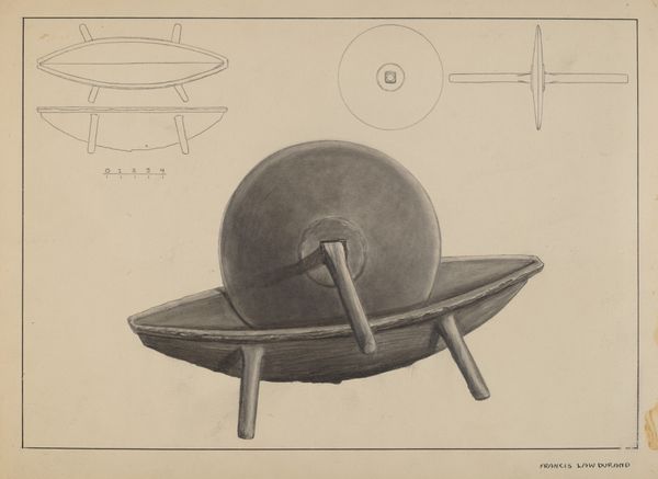 Karl Joubert rendered this depiction of a Coffee Roaster using graphite and watercolor, presenting a functional object as a vessel of deeper symbolism. The rounded form of the roaster—a sphere cut in half—immediately evokes primordial images of the cosmos divided, of containment and potential release. Consider the alchemical retorts, cauldrons used not only for practical transformation but as symbolic wombs for rebirth. Here, the coffee roaster is not merely a kitchen tool but an instrument of transformation. We might reflect on the cyclical journey of the coffee bean itself. From the earth, through the fire, culminating in the daily ritual of coffee preparation. Fire has always been a double-edged symbol, of destruction and also warmth, and in the context of the Coffee Roaster, it invites contemplation of this duality. The roasting process, much like life itself, demands a delicate balance and constant attention.
