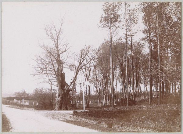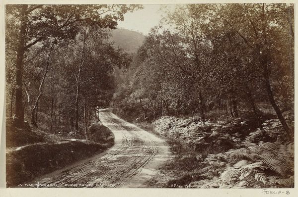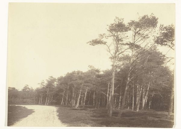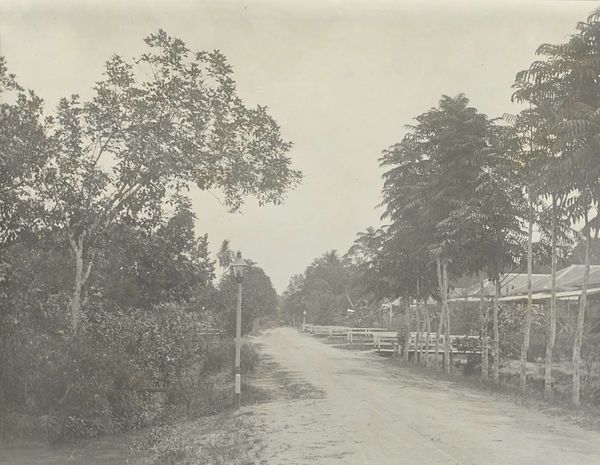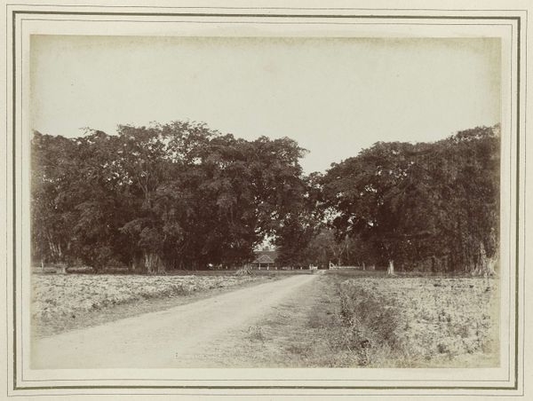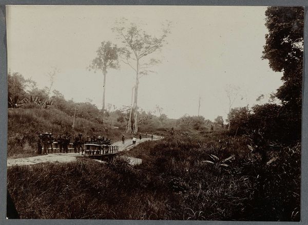 Curator: Here we have an anonymous gelatin-silver print titled "Spooraanleg te Suriname," dating from somewhere between 1916 and 1930. Editor: It has a stark, almost haunting quality, doesn't it? The road seems to cut directly into the wilderness, a gray gash through a sea of trees. Curator: Yes, and the monochrome really enhances that sense of drama and contrast. It captures the period's focus on realism—what can you tell us about this landscape’s history? Editor: Well, “Spooraanleg te Suriname” translates to ‘Railroad Construction in Suriname’ which offers some vital context. Look closely at the vegetation and note that there are felled trees lining either side of this rudimentary pathway. It is clearly a site of colonial resource extraction. The image's symbolism underscores a larger narrative of exploiting the land and labor of Suriname. Curator: Precisely, and perhaps also the photographer is representing an advance into unexplored spaces. Roads are ancient symbols—pathways, movement, transitions… They appear throughout diverse cultural traditions. Editor: But for whom is this path being cleared? Railroads serve specific economic and political agendas, generally prioritizing colonizers' interests. This photograph may well have been taken for documentation and to also convey a false sense of order over a landscape which was very much altered by violent extraction. Curator: That’s a fair point. Although it may look innocuous at first glance, the cultural associations quickly become sinister. The artist has successfully frozen this scene to force us to think about more complex histories. It reminds me of something... Editor: So, in considering it from our contemporary position, what responsibilities do viewers have in the presence of such historical artefacts? Curator: It's a poignant reminder of how even seemingly objective documentary images can conceal layered meanings and hidden perspectives. Thanks for unraveling that complexity. Editor: Always a pleasure. It's in those unravellings we locate both justice and perhaps healing, in a small way.