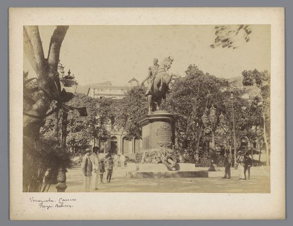 This stereoscopic card by Johann Friedrich Stiehm captures the Frans Hals Monument in Haarlem, presenting a dual perspective from around the late 19th century. The monument itself rises as a focal point, its form and detailing captured through Stiehm's lens. The composition emphasizes structure through the calculated arrangement of the statue, pedestal, surrounding greenery, and architectural backdrop. A play of light and shadow models the statue's contours, giving depth to the scene, while the parallel views create an immersive spatial experience, effectively drawing viewers into the depicted locale. This stereoscopic image destabilizes traditional notions of photography as merely a representational medium. Instead, Stiehm creates a deliberate viewing experience that invites contemplation of space, perception, and the symbolic function of monuments. The work functions as a cultural artifact and as an aesthetic object that invites an ongoing dialogue between observer and artwork.