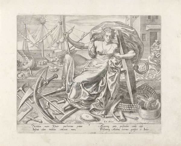 Editor: Here we have Philips Galle's "Landbouw," created in 1574. It's an engraving, a print, and it has such a rich, almost overwhelming amount of detail. I'm really drawn to how it represents abundance, but I’m curious – how do you interpret this work, especially considering its historical context? Curator: Well, given its title, "Landbouw," which translates to agriculture, the piece celebrates prosperity rooted in the land. We see Ops, the Roman goddess of fertility and harvest, surrounded by symbols of agricultural wealth: bountiful produce, fertile fields, and tools of cultivation. Consider the date, 1574. This was a period of upheaval in the Netherlands, part of the Dutch Revolt against Spanish rule. Editor: So, this image could be more than just a celebration of agriculture? Curator: Precisely! Think about how images are used to convey specific messages. This image champions Dutch resilience and future prosperity by emphasizing their strong agricultural base. The scene embodies a vision of hope amid conflict, affirming the intrinsic value and enduring nature of their land and labor. It subtly pushes back against the social unrest. Editor: That’s fascinating. So the idyllic scene isn’t just a simple landscape; it’s actually a statement about Dutch identity and defiance? Curator: Exactly! It reveals how artists use imagery to negotiate public sentiment and construct cultural narratives, shaping what viewers perceive and value in art. Consider where this would have been displayed. Editor: I see now! What I thought was simply a beautifully detailed scene is actually steeped in the politics of its time. Curator: Indeed, a reminder that art rarely exists in a vacuum, often engaging with the world in profound and thought-provoking ways.