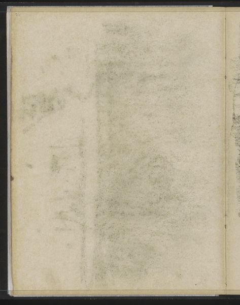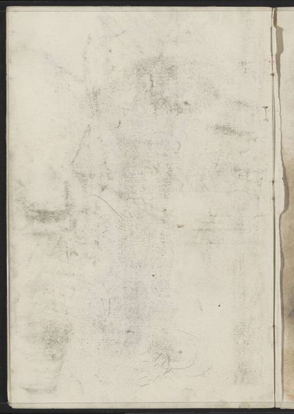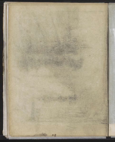 Curator: This is Willem Witsen's "Abklatsch van de krijttekening op pagina 66," a drawing from circa 1884-1891. It's a pencil on paper work, currently held at the Rijksmuseum. Editor: My initial impression is one of muted silence. The diffused strokes create a kind of veil over the page. There is something hauntingly ephemeral about it. Curator: The formal elements definitely support that reading. Witsen’s use of the 'Abklatsch' technique—essentially a transfer or rubbing—contributes to this atmospheric quality. The lines are softened, the forms less defined, emphasizing light and shadow over precise representation. This evokes, for me, an awareness of time, memory, and absence. Editor: Indeed, this indistinct quality lends itself to interpreting it within the context of 19th-century social anxieties. Witsen belonged to a generation grappling with rapid urbanization, industrialization and shifting class structures. I read that blurred image not as mere aesthetic choice, but as an attempt to capture a world in flux, perhaps alluding to the dispossession and displacement many experienced. Curator: I agree that historical context is crucial, however, the hazy forms allow for multiple interpretations without pinning down any single referent. Focusing solely on socioeconomic anxiety limits the work's potential. Perhaps Witsen wanted to capture the feeling, rather than the details, of his subject—embracing ambiguity and subjective impression. Editor: But isn't that feeling also a product of its historical conditions? The alienation one feels standing in the face of modernity, the dissolution of community… I think those emotions can not be separated from the reality of the era. Curator: Perhaps. I still find pleasure in appreciating the piece’s inherent qualities such as the subtle variations in tone achieved through delicate mark-making. Editor: Of course! Ultimately, this delicate sketch offers a fascinating glimpse into the intersection of individual perception and societal upheaval. Curator: And shows how, even with such minimal form, it can offer endless possibilities for observation.