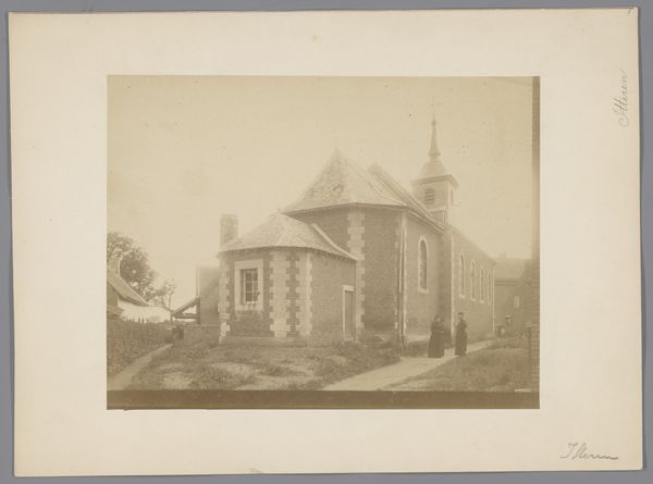 Here, we see an undated photograph titled "Gezicht op de Pastorie Hervormde Kerk te Schelluinen" by an anonymous photographer. The monochromatic print gives a textured feel, emphasizing the linear brickwork and roof tiles of the building. The photograph is structured around the prominent rectory, which commands the central space with its tower asserting a vertical counterpoint to the horizontal spread of the building. The composition balances the architectural solidity with the organic lines of the surrounding bare trees, a contrast that softens the image and hints at the building's integration with its environment. This interplay between form and context invites a semiotic reading, where the building represents stability and tradition against the natural, temporal world. The subdued palette further suggests a sense of historical continuity and the passage of time, reflecting a dialectic between permanence and change, central to cultural and architectural preservation.