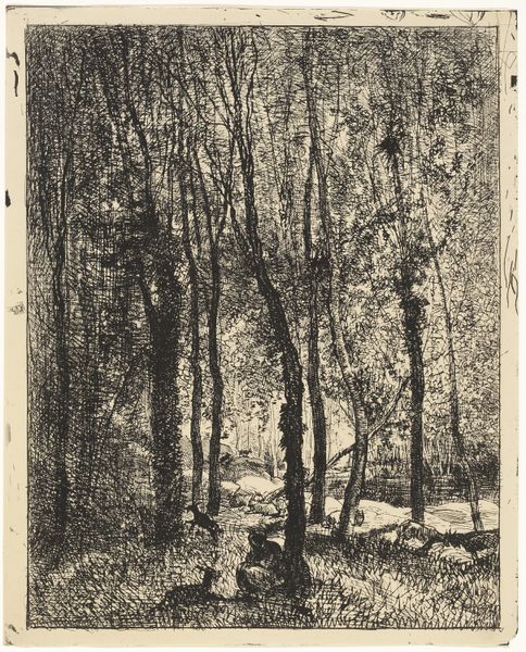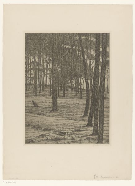 Luigi Conconi created this print of a forest, sometime between the late 19th and early 20th century. Trees, especially those standing tall in a forest, have long held symbolic weight. In many cultures, trees are seen as a connection between the earthly and spiritual realms, as they are rooted in the ground but reach towards the sky. This symbolism recurs across vastly different traditions. Consider the World Tree in Norse mythology, Yggdrasil, a colossal ash tree connecting the nine worlds; or the Bodhi tree under which Buddha attained enlightenment. Similarly, the dense forest has often been employed as a powerful symbol of the unconscious mind, a place where the rational mind cannot penetrate. Looking at this seemingly simple forest scene, the image evokes a sense of mystery, inviting us to consider the complex relationship between humanity and nature.