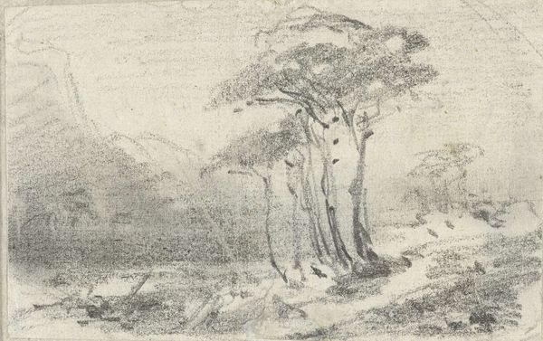 Editor: This is Dr Thomas Monro's "Landscape Composition with Trees in a Wind, and Distant Hills" from the Tate Collections. The monochromatic wash gives it a melancholic feel. What do you see in this piece that I might be missing? Curator: Notice how the wind, though unseen, is represented? The trees are bent, embodying resilience. They are a visual metaphor for human endurance in the face of adversity, a common theme in Romanticism. Does it evoke any personal memories or associations for you? Editor: I see what you mean, the bending does suggest resilience. I hadn't thought of it in relation to Romanticism though. Thanks for the insight. Curator: It is a reminder that art often acts as a mirror, reflecting both the artist's inner world and our own.
