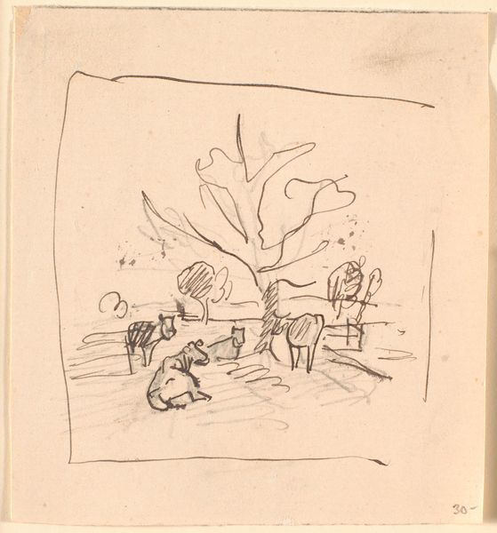 Curator: This is a drawing titled "Nieuw-Guineese mannen bouwen een kano," or "New Guinean Men Building a Canoe," created by F. Ockerse, sometime before 1936. It’s ink on paper. Artist: The moment I saw it, I thought of storytelling. There's this vibrant, bustling energy... Like peeking into a very specific and personal adventure narrative. A slightly detached adventurer, locals all working away, constructing something. Historian: Yes, and it reflects a prevalent colonial genre of depicting Indigenous peoples engaged in traditional activities. Drawings like these, and particularly ones focused on work, often circulated to reinforce narratives of "development" and to legitimize colonial projects by emphasizing resource extraction. Artist: I suppose. I can't quite switch that off, and step outside of myself to experience this in a pre-critical state of wonder. I just don't have that switch in my DNA! Historian: Absolutely! Consider the artist’s placement – elevated, almost observing, set apart from the canoe builders with that rifle beside him... There's a clear power dynamic portrayed, even unconsciously perhaps. Who is it aimed at and pointed to, really? It asks to be considered. Artist: And there's this kind of flattened perspective. It almost feels like I'm flipping through the pages of a graphic novel, you know? A single moment, rendered in ink... But that makes it immediate. I can see them so very clear. Their focus, what that is meant to show in its core. Historian: Exactly, the use of ink gives a starkness, a documental feel. Though it attempts to depict an “authentic” scene of canoe construction, it's heavily mediated through the artist’s, and by extension, colonial gaze. This is indigenous Americas. This, right here is about context! We have to go back into it all, find it all! Artist: In the best drawings there is truth. What does this artist reveal? Maybe just an interpretation that can start the biggest stories? Even if a dark story, maybe? It is a thing that deserves thinking. A lot. It deserves being written in the heart. Historian: Precisely, seeing is never neutral, and drawings like this offer us a lens not just into the depicted subject, but also into the historical context in which such depictions were made and consumed.
