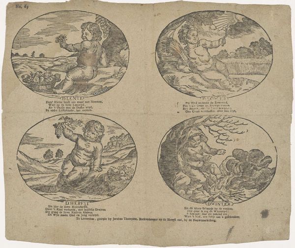 Curator: Here we have a page from an album, titled "Albumblad met diverse voorstellingen," dating from between 1814 and 1869. The artist is Alexander Cranendoncq, and the medium is pen on paper. Editor: Oh, a collection of miniature worlds! I’m instantly charmed. There’s something so intimate and playful about these sketches, like catching a glimpse into someone's dream journal. The way the pen lines capture light and shadow is so delicate. Curator: Indeed. Observe how the pen work delineates various scenes – landscapes, cityscapes, and genre paintings, interspersed with portrait sketches, especially of figures on horseback. It suggests an artistic practice rooted in observing and recording daily life. The aged, toned paper further emphasizes the passage of time and the labor inherent in producing these detailed renderings. Editor: The repetition of the horseback riders makes me wonder if they held a particular significance for Cranendoncq. Were they symbols of power, freedom, or perhaps something more personal? And the cityscape; it seems both familiar and dreamlike. There's a story begging to be unfolded, I feel. It feels very Romantic! Curator: The recurring equestrian motif could relate to the social context of the time—perhaps Cranendoncq was documenting the military presence or social elite. I’m drawn to consider how this album page blurs the boundaries between formal artistic creation and everyday documentation. It serves almost as a ledger of life's fleeting moments captured on a mass-produced surface - paper - for later personal viewing. Editor: That’s so interesting to consider. Looking at the individual vignettes together now as a kind of story ledger shifts everything. Each one gains so much context being paired next to another! Curator: It becomes apparent that it functioned as a receptacle for both private reflection and documentation of public life through material investigation. Editor: Ultimately, there's a compelling sense of observation, capturing life’s rich tapestry—all within the unassuming frame of a sketchbook page, just as the artist willed it to be!